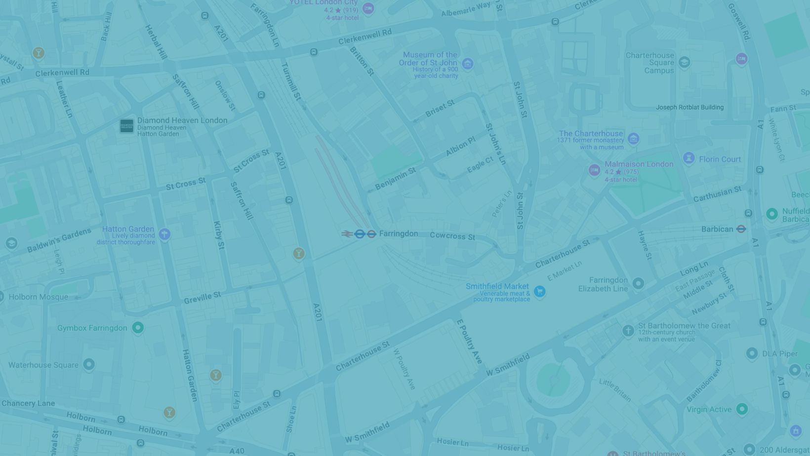 The closest station is Farringdon, which is served by London Underground, National Rail services and the Elizabeth Line.